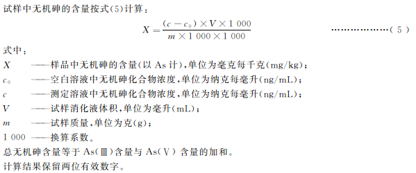 本標(biāo)準(zhǔn)第一篇規(guī)定了食品中總砷的測定方法。本標(biāo)準(zhǔn)第二篇規(guī)定了食品中無機砷含量測定的液相色譜-原子熒光光譜法、液相色譜-電感耦合等離子體質(zhì)譜法。