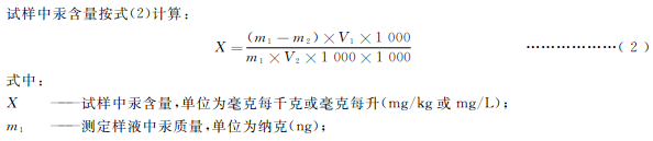 分別吸取樣液和試劑空白液各5.0mL置于測汞儀的汞蒸氣發生器的還原瓶中,以下按照12.4“連接抽氣裝置…中…同時做空白試驗”進行操作。將所測得吸光度值,代入標準系列溶液的一元線性回歸方程中求得試樣溶液中汞含量。