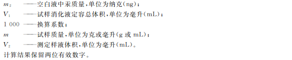 稱取固體試樣0.2g~1.0g(精確到0.001g),新鮮樣品0.5g~2.0g或液體試樣吸取1mL~5mL稱量(精確到0.001g),置于消解內罐中,加入5mL硝酸浸泡過夜。蓋好內蓋,旋緊不銹鋼外套,放入恒溫干燥箱,140℃~160℃保持4h~5h,在箱內自然冷卻至室溫,然后緩慢旋松不銹鋼外套,將消解內罐取出,用少量水沖洗內蓋,放在控溫電熱板上或超聲水浴箱中,于80℃或超聲脫氣2min~5min趕去棕色氣體。取岀消解內罐,將消化液轉移至25mL容量瓶中,用少量水分3次洗滌內罐,洗滌液合并于容量瓶中并定容至刻度,混勻備用;同時作空白試驗。