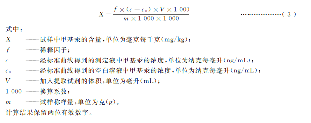 17.4.2甲基汞標準儲備液(200g/mL,以Hg計):準確稱取0.0250g氯化甲基汞,加少量甲醇溶解用甲醇溶液(1+1)稀釋和定容至100mL。于4℃冰箱中避光保存,可保存兩年。或購買經國家認證并授予標準物質證書的標準溶液物質