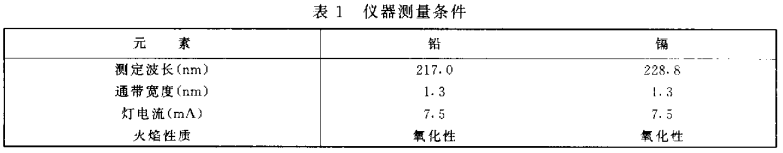 3.11鉛標(biāo)準(zhǔn)儲備液,1.000mg/mL;稱取1.0000g(精確至0.0002g)光譜純金屬鉛于50mL燒杯中,加入20mL硝酸溶液(3.5),溫?zé)崛芙?全量轉(zhuǎn)移至1000mL容量瓶中,冷卻后,用水定容至標(biāo)線,搖勻。