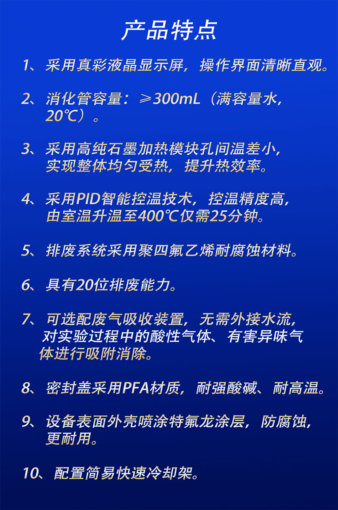 采用PID智能控溫技術,控溫精度高,由室溫升溫至400℃僅需25分鐘。