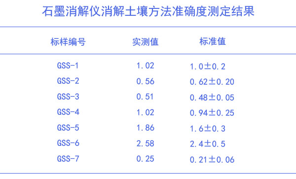 取7個GSS系列土壤標樣,分別為GSS-1到GSS-7按照消解方法進行處理測定方法準確度下如表所示: