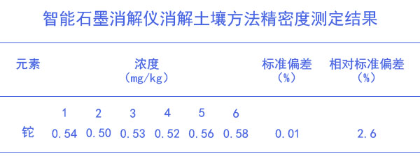 實驗采用硝酸-鹽酸-氫氟酸消解體系對土壤進行前處理消解,實驗結果滿足要求,符合土壤類的消解。采用智能石墨消解儀三酸體系消解土壤測定土壤中的鉈元素,具有耗時短、加酸量少、本底低等特點。