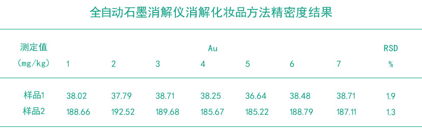 文章中采用全自動(dòng)消解儀對高級化妝品進(jìn)行濕法前處理消解,測定分析化妝品中的金元素含量,過程中體現(xiàn)出全自動(dòng)消解儀操作方便、自動(dòng)化高、處理樣品速度快速等特點(diǎn),消解方法符合實(shí)驗(yàn)要求。