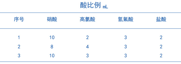 1、硝酸,高氯酸,氫氟酸,鹽酸(化學試劑均為分析純),所用溶液均用高純水配制。