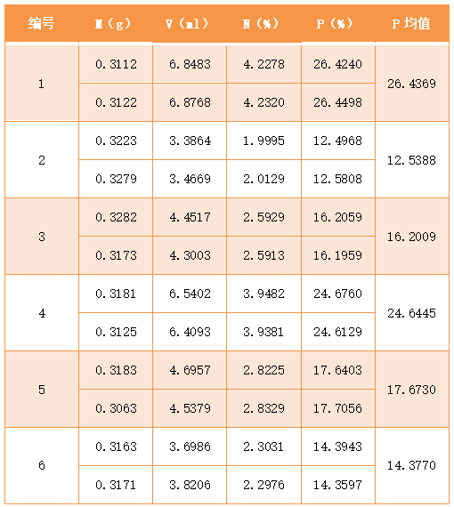 3)消解完成后,冷卻至室溫,用凱氏定氮儀進(jìn)行蒸餾滴定,打印出檢測結(jié)果。同時做空白實(shí)驗(yàn)。