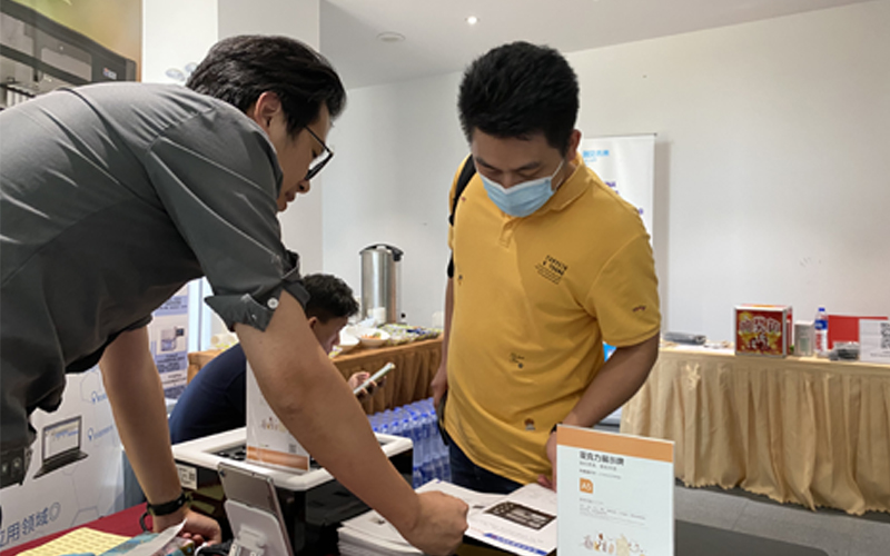 會議間隙,格丹納儀器展臺吸引了多名與會學員,他們一邊觀摩此次參展的D4智能石墨消解儀和HT-300實驗電熱板,一邊不時與工作人員攀談交流,格丹納工作人員詳細為大家講解學員關心的問題,同時介紹公司產品及相關的解決方案,場面展現濃厚的學習交流氛圍。