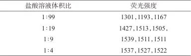 表3   不同體積比的鹽酸溶液的熒光強度(n=3)